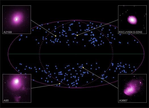 Astronomers using X-ray data from these orbiting observatories studied hundreds of galaxy clusters, the largest structures in the universe held together by gravity, and how the properties they display differ across the sky. The result challenges one underpinning of cosmology that the Universe is "isotropic," meaning it is the same in all directions.